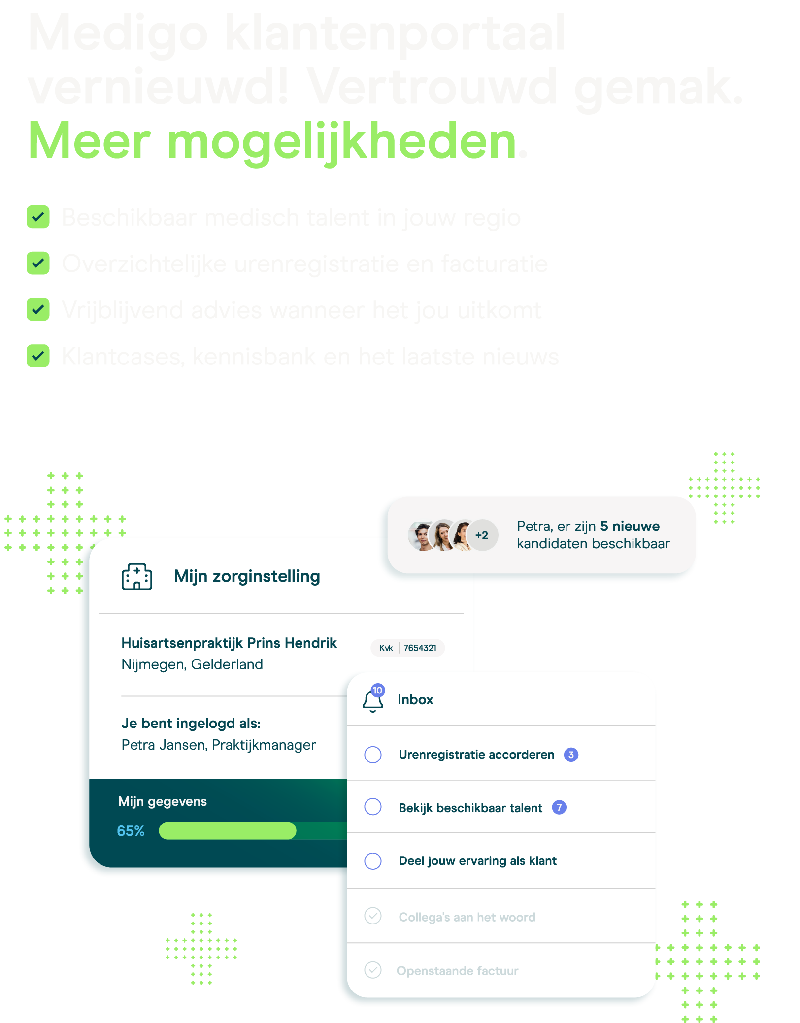 Het Medigo klantenportaal is geoptimaliseerd voor gebruik op hoge resoluties (min. 1024px). Zo profiteer je van de volledige functionaliteit en de best mogelijke gebruikerservaring.